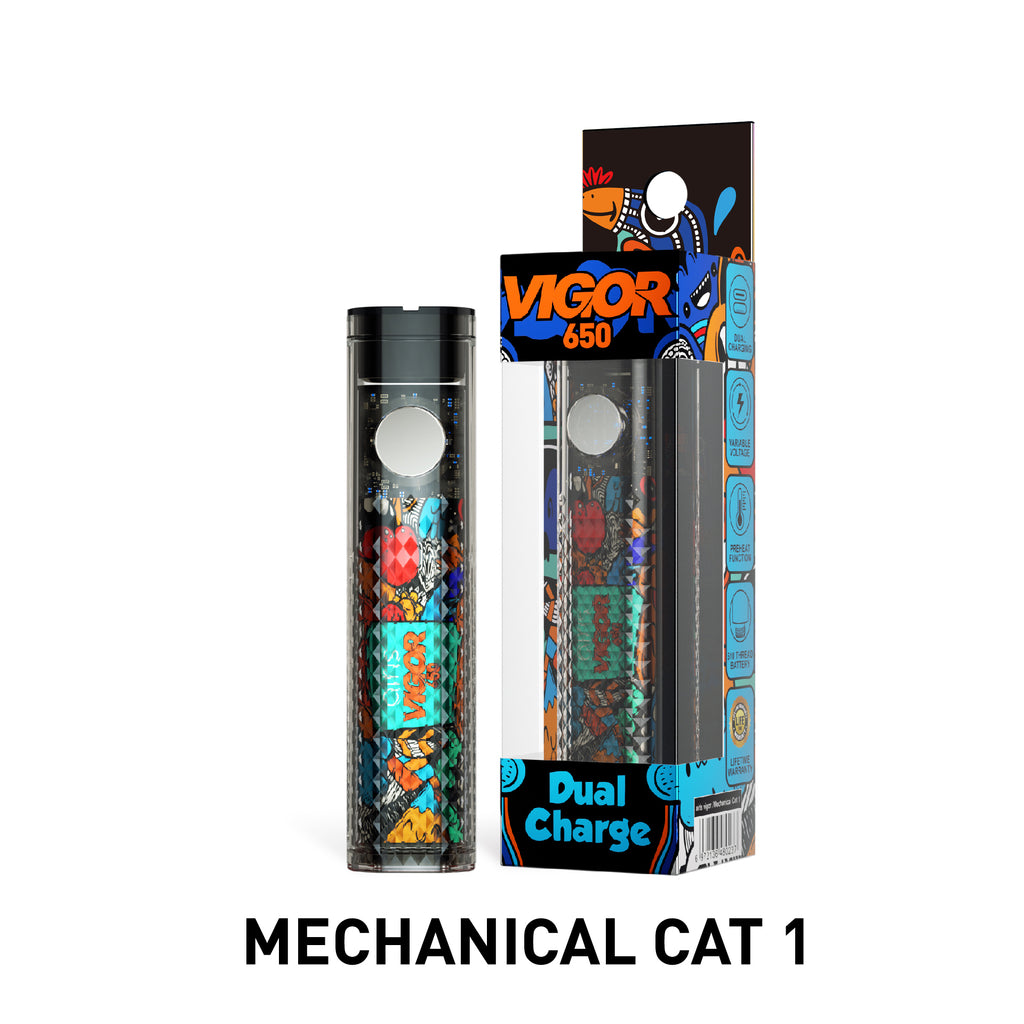 The Airis VIGOR combines powerful performance with unique style, making it the perfect 510-thread vape battery for CBD enthusiasts. With its creative graffiti design and customizable voltage settings, the VIGOR offers both functionality and flair.